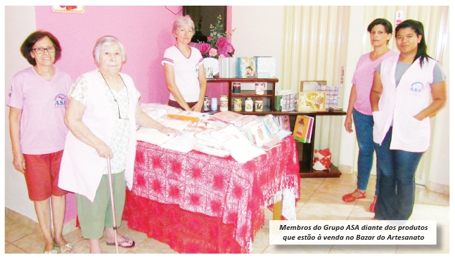Ela aproveitou e convidou todos para prestigiarem o evento. “Esperamos todos os amigos ituveravenses para comparecerem Membros do Grupo ASA diante dos produtos que estão à venda no Bazar do Artesanato e contribuírem da forma que puderem. A visita de vocês é muito aguardada. O amor é lindo”, conclama a presidente.