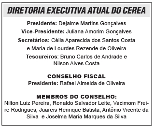 “Quem puder e desejar ajudar a Entidade nesta Campanha, o Cerea está recebendo doações de materiais de construção sendo sua necessidade momentânea de: 110 barras de ferro, 1.385 peças de estribo, 1.800 blocos de concreto, 25 metros de areia, 110 sacos de cimento, 110 sacos de cal, 10 kilos de arame recozido trançado, 2.000 tijolos comuns prensados e 15 metros de pedra britada entre outros”, solicita o Presidente Dejaime.