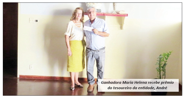 A ganhadora esteve pessoalmente na entidade esta semana e recebeu o prêmio do diretor tesoureiro André Luiz dos Santos. A Campanha “Amigos da Creche” conta com cerca de 80 contribuintes que colaboram com pagamento de R$ 80 por mês.