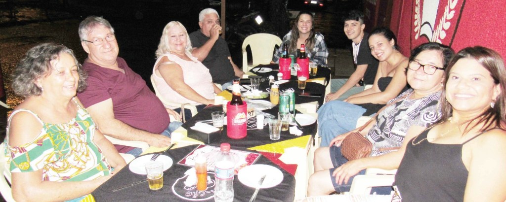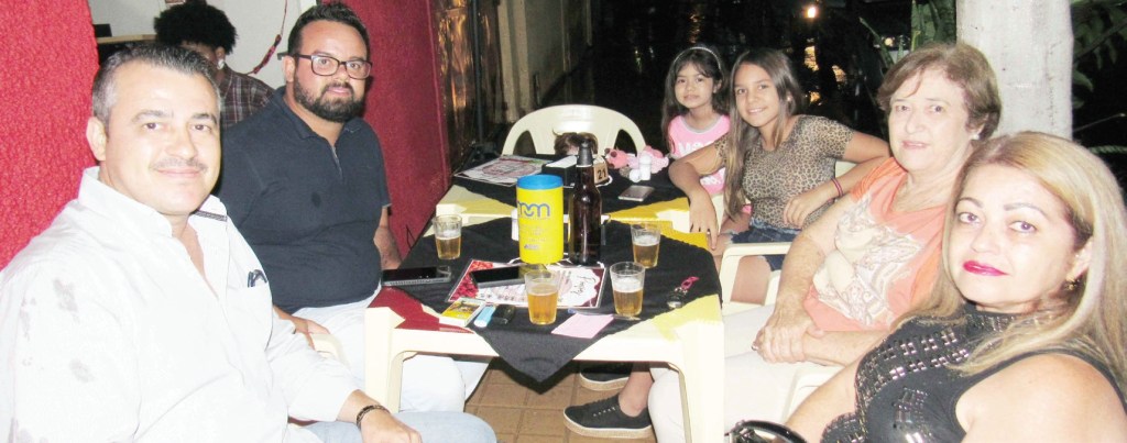 No Bar e Petiscaria Estação, Vânia, Ana Lúcia, Isabella, Isaac, Giovanna, Hélio, Madalena, Guto e Maria