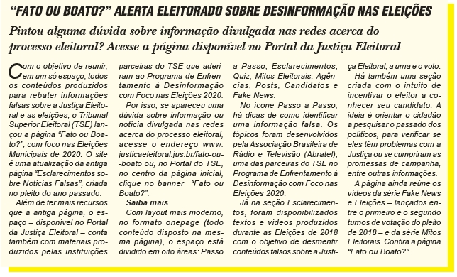 Trata-se de informações pertinentes para quem pretende participar do pleito, porém, de grande relevância para todos os cidadãos, pois o processo democrático somente pode ser considerado pleno com a participação de todos, seja de forma direta ou indireta.