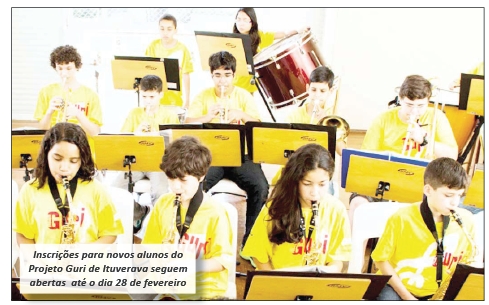 As inscrições para novos alunos do Projeto Guri de Ituverava seguem abertas seguem até o dia 28 de fevereiro, sexta-feira. O Projeto Guri em Ituverava conta com apoio da Prefeitura Municipal de Ituverava, Paróquia Nossa Senhora do Carmo, e Secretaria da Cultura, Turismo e Lazer.