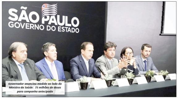 O Governador João Doria confirmou na quinta-feira (27) a antecipação da produção de vacinas contra gripe pelo Instituto Butantan, que será ampliada para 75 milhões de doses em 2020.