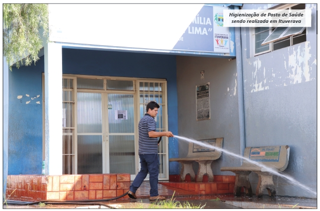 Foram higienizados as Unidades de Saúde, Santa Casa, Hospital, AME e Rodoviária, locais onde há a circulação de pessoas.