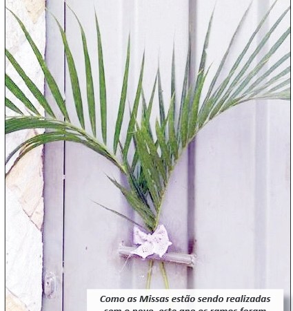 O tradicional Domingo de Ramos, dia cinco de abril, já aconteceu com os fiéis em casa na hora das Missas. Os ramos foram abençoados e um recipiente com água para ser abençoada e aspergida sobre os ramos, como sinal de comunhão.