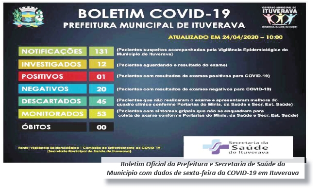 No sábado, dia 18 de abril, Ituverava recebeu o primeiro resultado positivo de COVID-19 no município.