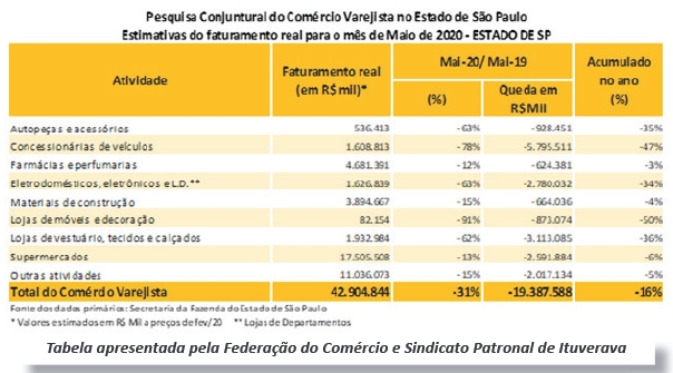 A Fecomércio-SP através do SINCOVAMI (Sindicato do Comércio Varejista do Município de Ituverava) divulgou na semana passada os dados da pesquisa sobre o varejo no Estado de São Paulo em relação ao Dia das Mães de 2020.