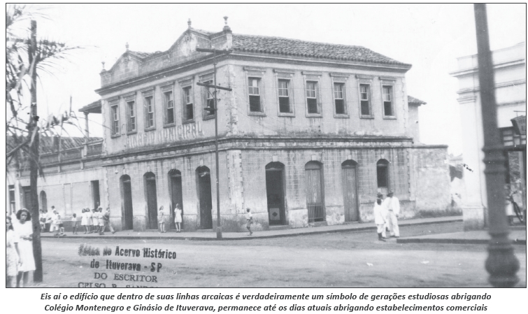 O “Ginásio de Ituverava” ou “Ginásio Montenegro” como era designado, de preferência, pelos moços e moças que cursaram suas aulas aí pelos anos de 1924, 1925 e 1926, funcionou no vetusto sobrado da Praça 10 de Março, onde se acha presentemente o Ginásio Municipal.