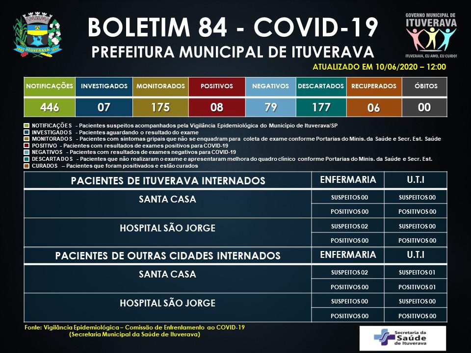 10/06/20 O Progresso de Ituverava Ituverava confirma oitavo caso positivo de COVID-19 É reforçado o pedido para que todos se mantenham em suas casas e adotem todas as medidas de prevenção necessárias. Além disso, é obrigatório no município o uso de máscaras, para proteção de toda a população. Compartilhe isso: Compartilhar no WhatsApp(abre em nova janela) WhatsApp Compartilhar no Facebook(abre em nova janela) Facebook Compartilhar no X(abre em nova janela) 18+ Relacionado