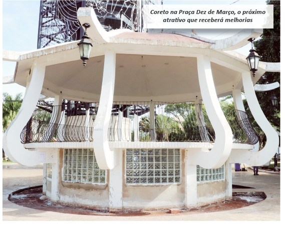 A Prefeitura de Ituverava está promovendo uma série de melhorias na Praça 10 de Março, localizada no Centro da cidade. Nessa obra, está sendo realizada a reforma dos banheiros da caixa d’água e ainda a reforma e ampliação dos banheiros próximos à Praça de Alimentação “Albino Fontebassi”. Também serão reformados o coreto e a arquibancada da Praça. A estrutura que sustenta os medalhões em homenagens a Ivan Lins e Vitor Martins, cantor e compositor da música “Ituverava”, receberão nova pintura.