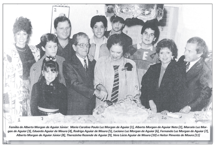 Restaram, portanto, dois filhos: Alberto Morgan de Alberto Morgan de Aguiar Júnior e a Farmácia Aguiar Aguiar Neto, farmacêutico e bioquímico, proprietário há 50 anos do Laboratório de Análises Clínicas Nossa Senhora do Carmo; casado com a professora Mara Carolina Paula Luz Morgan de Aguiar com quem tem três filhos: Marcelo Luz Morgan Aguiar, Luciano Luz Morgan de Aguiar e Fernanda Luz Morgan de Aguiar. E a filha Vera Lúcia Aguiar de Moura, casada com Heitor Pimenta de Moura, residentes em Ribeirão Preto; tem dois filhos: Eduardo Aguiar de Moura e Rodrigo Aguiar de Moura.