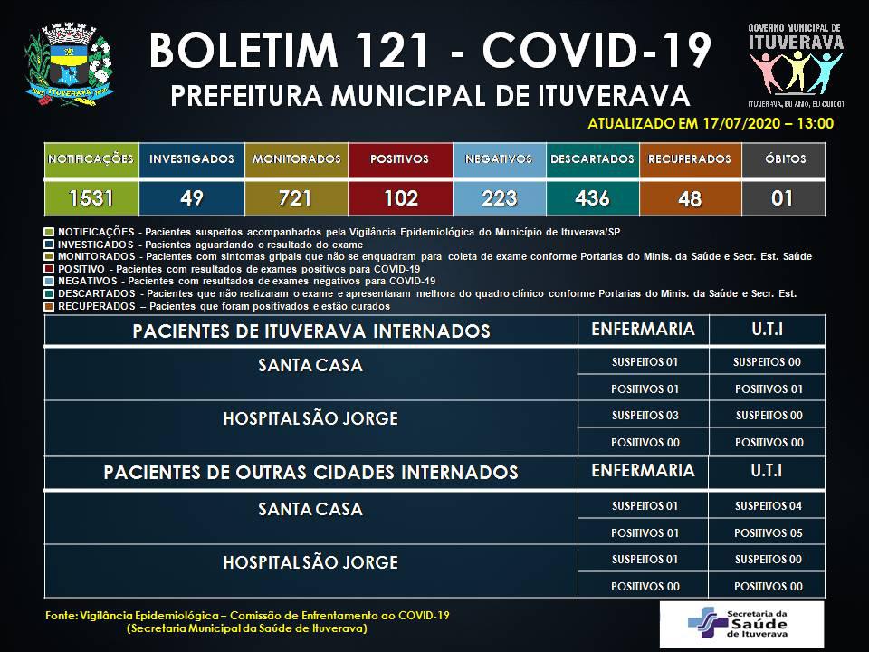 Hoje, Ituverava registrou mais sete casos confirmados de COVID-19. Os pacientes estão em isolamento domiciliar e sendo acompanhados pela Vigilância Epidemiológica.
