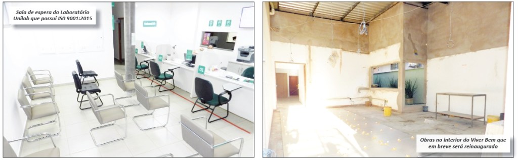 A recepção do Unilab também teve melhorias nas salas de coletas, e neste momento de pandemia conta com sala exclusiva para segurança dos pacientes para coleta de exames de COVID-19. Foi promovida a ampliação da Clínica de Fisioterapia, que hoje atende em novo local próximo à Santa Casa de Ituverava.