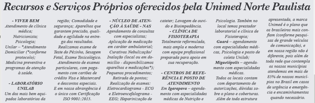 A Unimed Norte Paulista está completou no dia dois de setembro, quinta-feira, 28 anos de sua fundação. A operadora que está inserida no sistema da maior cooperativa médica do mundo, além de Ituverava atende também os municípios de Guará, Miguelópolis, Aramina, Buritizal e Igarapava.