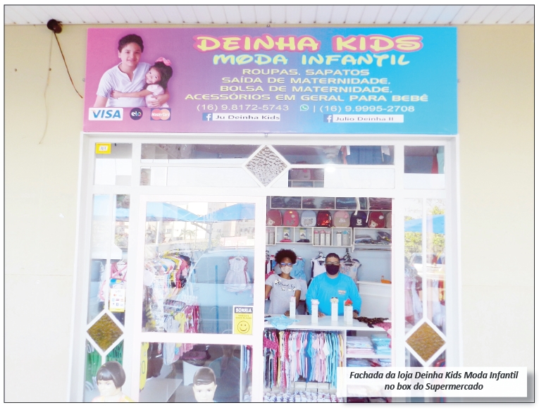 Há três anos trabalhando com produtos voltados para a linha infantil, a empresa Deinha Kids Moda Infantil agora está com loja física, localizada à Rua João Francisco Borges, 252, no Parque das Nações (Paulista Supermercado, antigo Supermercado Cecilio, box n° 05).