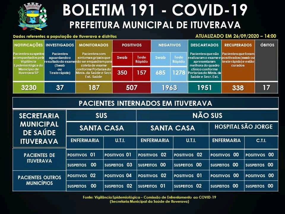 Ituverava registrou o 17º óbito por COVID-19. Nossa solidariedade aos familiares e amigos da vítima.