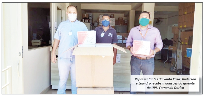 Na manhã de sexta-feira, dia 27 de novembro, a Santa Casa recebeu da empresa UPL a doação de quatro mil máscaras N95. Na ocasião, estiveram presentes o representante da UPL, Fernando Dorico Correia, gerente industrial, e para receber a doação, representaram a Santa Casa: Anderson Luís de Paula Durant, responsável por compras e o colaborador Leandro Marcos Antônio.