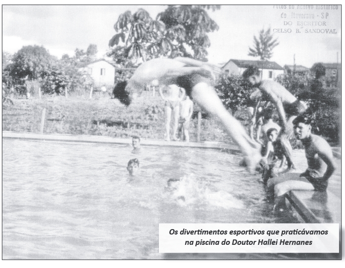 #2 – Não poderia deixar de registrar também do meu tempo de juventude. Os divertimentos esportivos que praticávamos na piscina do Doutor Hallei Hernanes, muito perto do que hoje é o Colégio Humberto França. Nossa meninada, eu, José Raul Chiconeli, Tuzinho irmão do Dr. Pio, Daniel Nogueira, Calil, seus irmãos Fuad e Fuedinho e tantos outros.