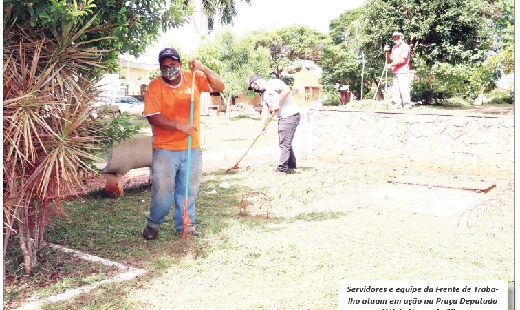 Quanto às praças, a equipe da Prefeitura e da Secretaria de Obras e Serviços Urbanos realizaram a limpeza com roçada na Praça José Flauzino Peixoto (atrás do Restaurante Fratellis) e deram início na limpeza com roçada na Praça Deputado Hélvio Nunes da Silva (Praça do Centro Cultural).