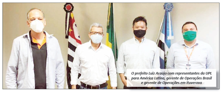 Na quarta-feira, dia 03 de fevereiro, o prefeito Luiz Araújo recebeu em seu gabinete os representantes da UPL. Estiveram presentes na reunião: Dante Matsufugi, Diretor Supply Chain para América Latina e Brasil; Marcos Oliveira, Gerente de Operações Brasil; e Fernando Dorico, Gerente de Operações em Ituverava.