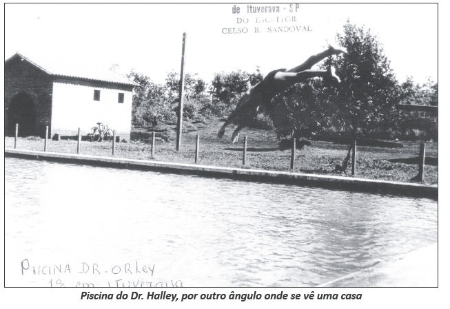 Dr. Halley adquire do senhor Chico Striarco uma chácara à R. Cel. Dionísio Barbosa Sandoval, rua predominantemente comercial, que vai desde o Córrego Pouso Alto até o Córrego Lavapés, e ali constrói uma piscina, a única da cidade. Construiu para uso particular, pretendendo erguer na chácara uma mansão, mas urbanista por excelência, gostava de gente ao seu redor para ouvir as histórias dos seus tempos de Guará, Lins, do Rio ou de São Paulo, ou até de Guaranésia-MG por onde andou procurando aprimorar seus dotes artísticos nos tempos de Edie Polo e do Tom Mix.