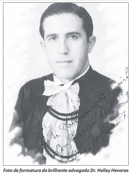O homenageado desta semana é o saudoso Dr. Halley Henares, advogado que militou por muitos anos no Fórum de Ituverava, defensor dos pobres, advogado de muita capacidade querido e estimado por todos os seus clientes, pois Dr. Halley era homem que tratava a todos com a mesma distinção. Cavalheiro por excelência, homem alegre que vivia sempre brincando, fazendo com que todos que o rodeava se sentissem contentes, pois perto dele não havia tristeza.