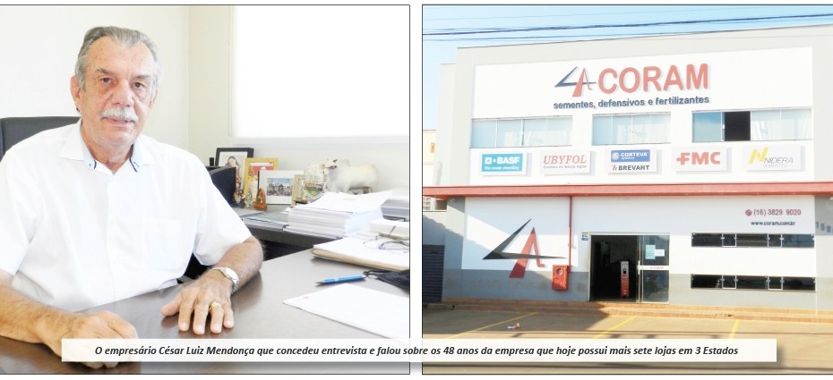 A Coram – Comércio e Representações Agrícolas Ltda de Ituverava completa, neste ano de 2021, 48 anos de atuação no mercado. Em virtude disso, o diretor da importante rede, empresário César Luiz Mendonça, concedeu entrevista ao Jornal O Progresso para falar sobre o que representa estar em atividade há tanto tempo, e também sobre o desenvolvimento da empresa ao longo dos anos.