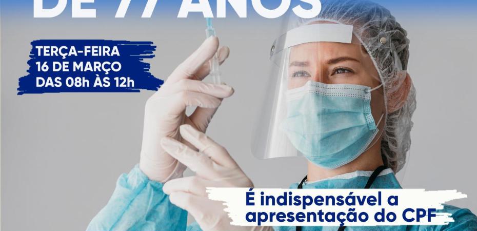 13/03/21 O Progresso de Ituverava Primeira dose da vacina contra COVID-19 para idosos acima de 77 anos será dia 16 Na terça-feira, dia 16 de março, será realizada mais uma etapa da vacinação contra a COVID-19 em Ituverava. Fiquem atentos ao local, data, horário e público-alvo da vacinação. É indispensável a apresentação do CPF. Compartilhe isso: Compartilhar no WhatsApp(abre em nova janela) WhatsApp Compartilhar no Facebook(abre em nova janela) Facebook Compartilhar no X(abre em nova janela) 18+ Relacionado