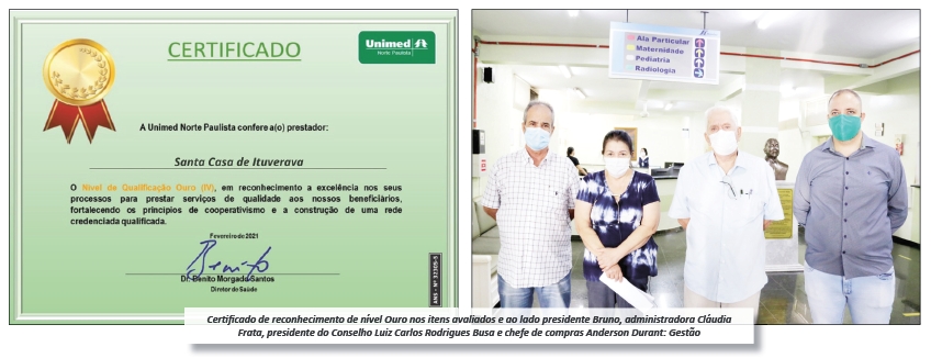 O presidente da entidade, Bruno Baldo Filho parabenizou todos os colaboradores, corpo clínico, diretoria, conselho e a população que acredita e confia na Santa Casa. “Isso é fruto do trabalho de todos desde o conselho de administração, corpo clínico, enfermagem, demais colaboradores, diretoria executiva, somos um time, precisamos e contamos com o trabalho e ajuda de todos, agradecendo o reconhecimento da Unimed Norte Paulista e da comunidade de Ituverava e região que sempre nos apoia”, declara Bruno.