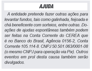 O CEREA (Centro de Recuperação do Alcoólatra de Ituverava-SP) está desenvolvendo mais uma ação para a campanha em prol de um de seus mais atuantes componentes, o Sr. Rafael Almeida de Oliveira. A entidade fará pizzas que serão vendidas com a finalidade de arrecadar fundos para a compra de um triciclo especial para o Sr. Rafael que, devido a complicações de Diabetes, teve que amputar uma de suas pernas.