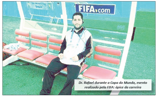 Ao falar de sua formação, ele destacou que uniu o útil ao agradável, já que sua paixão pelos esportes sempre foi grande. “Sempre gostei muito de esportes na minha vida e quando me formei, a residência em Medicina Esportiva praticamente iniciado (a primeira turma foi em 2007). Portanto, consegui unir útil ao agradável”, definiu em entrevista. Entre tantos eventos citados, ele relembrou a emoção de ter participado da Copa de 2014 no Brasil. “Todos eventos foram importantes, porém não há como negar que a Copa do Mundo foi o ápice”, lembrou o médico esportivo Dr. Rafael.