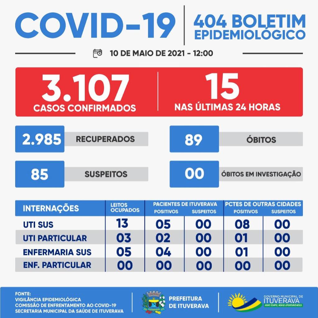 Ituverava registrou três óbitos por COVID-19. Nossa solidariedade aos familiares e amigos das vítimas. Além disso, mais 15 casos da doença foram confirmados. Nesse momento, para proteção de toda a população ituveravense, é fundamental que todos se mantenham em suas casas e adotem todas as medidas de prevenção necessárias, como evitar aglomerações, fazer o distanciamento social e o uso de máscaras, que é obrigatório no município.