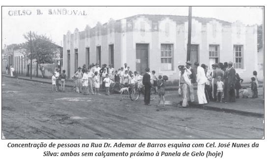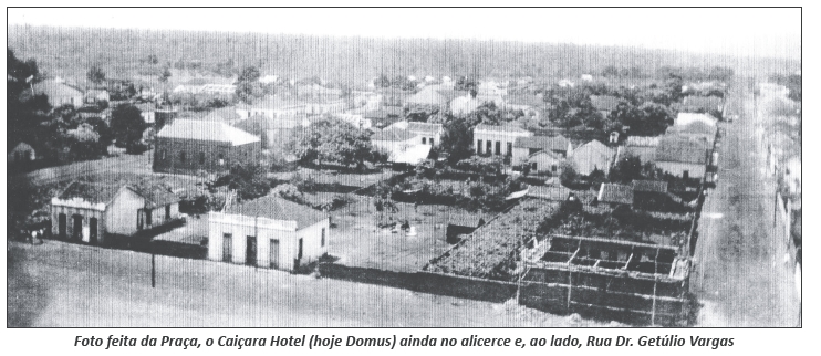 A primeira rua a receber a pavimentação foi a rua Dr. Getúlio Vargas, a rua da Prefeitura. A firma contratada imediatamente providenciou o reparo da caixa – retirada da terra da rua, ou melhor, rebaixamento da mesma -, aquisição de paralelepípedos, areia e a contratação de um calceteiro. Este veio de Minas, e é o Sr. Aristides Gonçalves Montana, o qual passou a residir entre nós e está aqui até hoje (1978), tendo colocado milhares de metros quadrados de calçamento, como também preparou diversos rapazes para uma profissão até então aqui desconhecida.