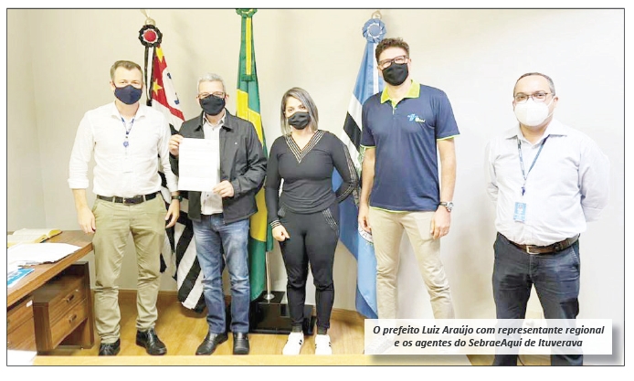 Na segunda-feira, dia 03 de maio, o prefeito Luiz Araújo recebeu a visita da equipe do Sebrae Aqui de Ituverava e representantes do Sebrae de Franca. Estiveram presentes na reunião os Agentes de Desenvolvimento do Sebrae Aqui de Ituverava, Fernando Caetano e Juliana Machado; o Gerente do Escritório Regional do Sebrae de Franca, Vinícius Agostinho da Nóbrega; e o Consultor de Projetos e Negócios, Anderson Cristiano de Almeida Silva.