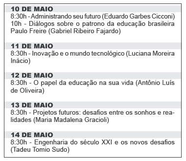 Maio é o mês em que as ETECs (Escolas Técnicas Estaduais) promovem uma programação especial em homenagem a Paulo Freire. Neste ano, em decorrência do isolamento social necessário para o enfrentamento da pandemia da COVID-19, as atividades ocorreram em ambientes virtuais.