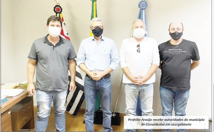 Na segunda-feira, dia 17 de maio, o prefeito Luiz Araújo recebeu a visita, em seu gabinete no Paço Municipal, de autoridades do município de Corumbataí-SP. Na visita estiveram presentes o prefeito Leandro Martinez; o vice-prefeito João Batista Altarugio; e o secretário de Governo, Luís Fernando Mancini.