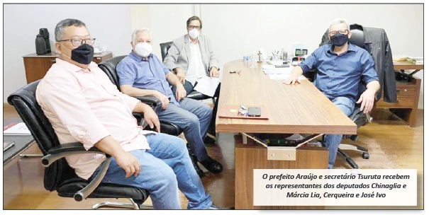 O prefeito Luiz Araújo e o secretário Executivo, Leonardo Tsuruta, se reuniram com assessor da deputada estadual Márcia Lia e ex-prefeito de São Joaquim da Barra, José Ivo Vannucchi e com o secretário parlamentar do Gabinete do Deputado Arlindo Chinaglia na Câmara Federal, José Sérgio Cerqueira. Na ocasião, eles apresentaram ao prefeito Luiz Araújo três emendas parlamentares que foram destinadas pelo Deputado Federal Arlindo Chinaglia para Ituverava.