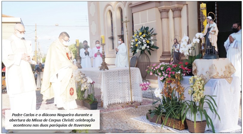 As Paróquias Nossa Senhora do Carmo e São João Batista de Ituverava, celebraram o dia de Corpus Christi na quinta-feira, dia três de junho. A Paróquia Nossa Senhora do Carmo teve missa campal, às 16h, em frente à Igreja Matriz, com transmissão pelas redes sociais.