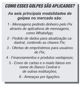Especialistas da Express CTB selecionaram algumas dicas para atentarem-se a esses crimes. Veja no quadro, como esses golpes podem ser aplicados. O Banco Central disponibilizou em seu site algumas perguntas e respostas para conscientizar a população sobre os golpes envolvendo o Pix, chamando a atenção para situações envolvendo o seu nome e de outras instituições financeiras.