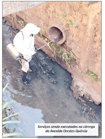 Na segunda-feira, dia 14 de junho, a Prefeitura de Ituverava realizou uma ação de limpeza e aplicação de larvicidas biológicos no córrego “Calção de Couro” da Avenida Governador Orestes Quércia. A ação foi realizada com apoio da Secretaria da Saúde, da Vigilância em Saúde, da Secretaria de Obras e Serviços Urbanos, e do Programa Frente de Trabalho. O objetivo da limpeza e aplicação de larvicidas biológicos é combater a proliferação do mosquito Aedes aegypti e do mosquito Culex (pernilongo).