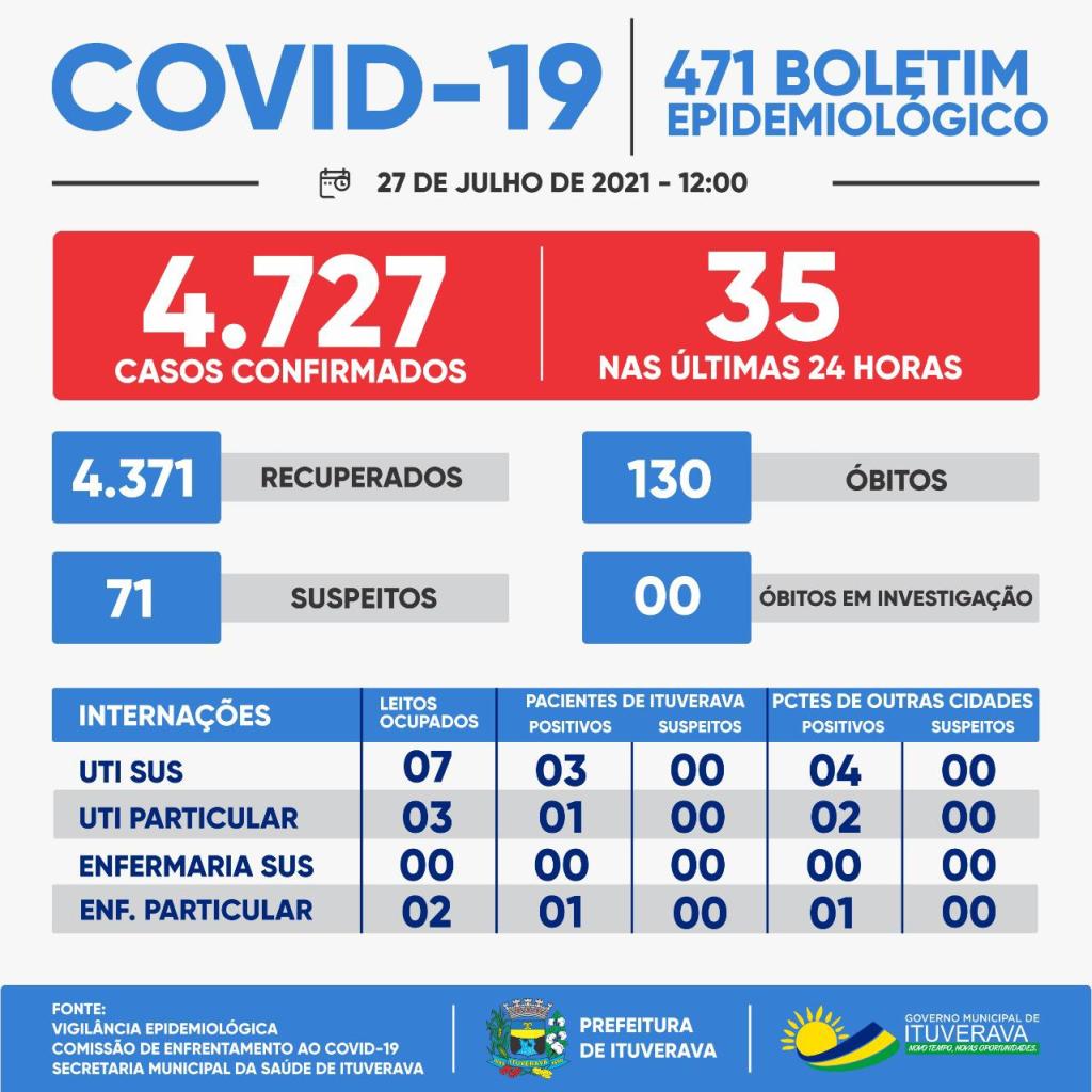 Ituverava registrou 35 casos de COVID-19. Nesse momento, para proteção de toda a população ituveravense, é fundamental que todos se mantenham em suas casas e adotem todas as medidas de prevenção necessárias, como evitar aglomerações, fazer o distanciamento social e o uso de máscaras, que é obrigatório no município.