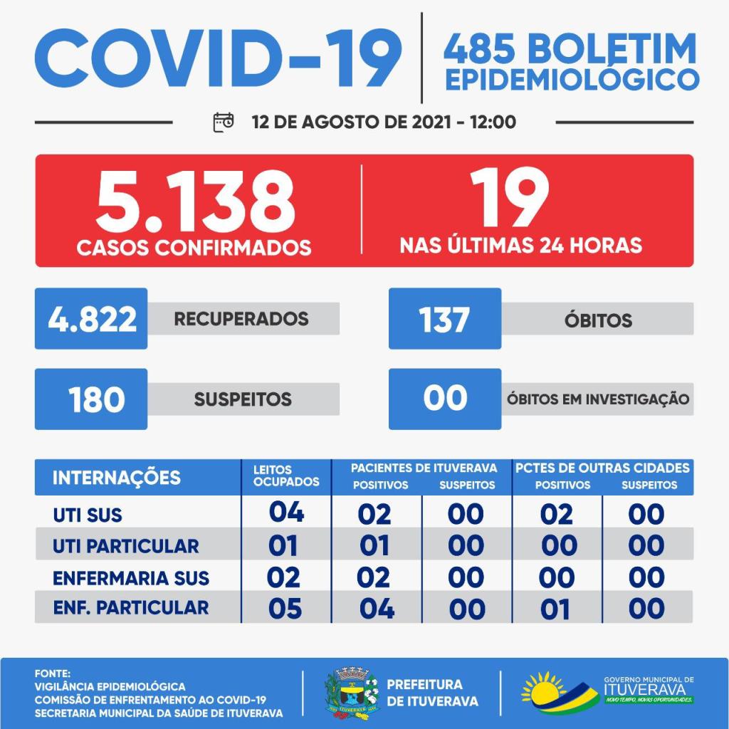Ituverava confirmou mais dois óbitos por COVID-19. Nossa solidariedade aos familiares e amigos das vítimas. Além disso, 19 novos casos foram registrados. Nesse momento, para proteção de toda a população ituveravense, é fundamental que todos se mantenham em suas casas e adotem todas as medidas de prevenção necessárias, como evitar aglomerações, fazer o distanciamento social e o uso de máscaras, que é obrigatório no município.