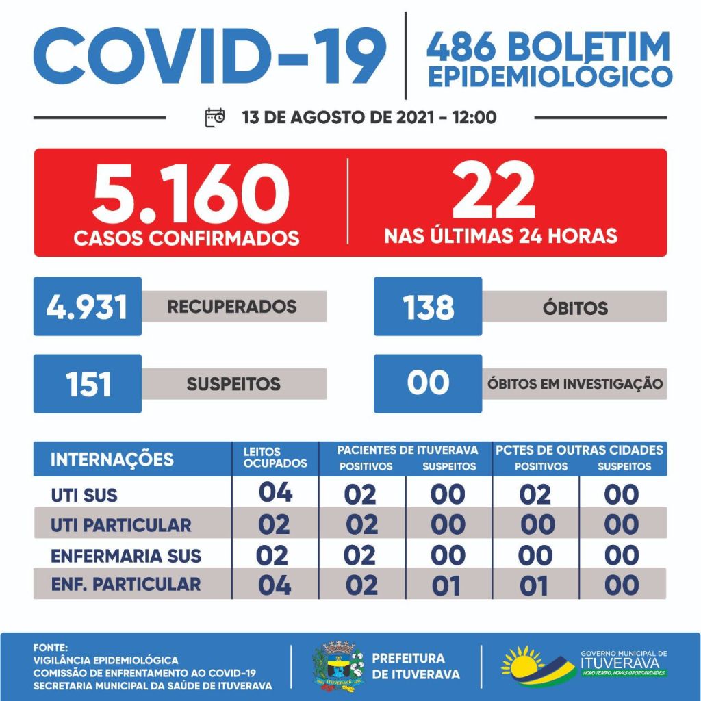 Ituverava teve mais um óbito por COVID-19. Nossa solidariedade aos familiares e amigos da vítima. Além disso, mais 22 casos foram confirmados. Nesse momento, para proteção de toda a população ituveravense, é fundamental que todos se mantenham em suas casas e adotem todas as medidas de prevenção necessárias, como evitar aglomerações, fazer o distanciamento social e o uso de máscaras, que é obrigatório no município.