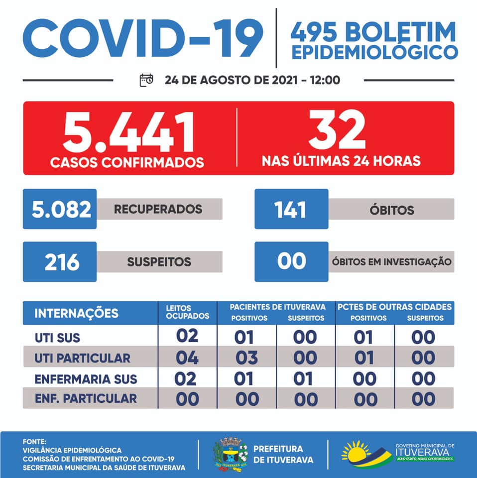 Ituverava tem mais 32 casos de COVID-19 confirmados. Nesse momento, para proteção de toda a população ituveravense, é fundamental que todos se mantenham em suas casas e adotem todas as medidas de prevenção necessárias, como evitar aglomerações, fazer o distanciamento social e o uso de máscaras, que é obrigatório no município.