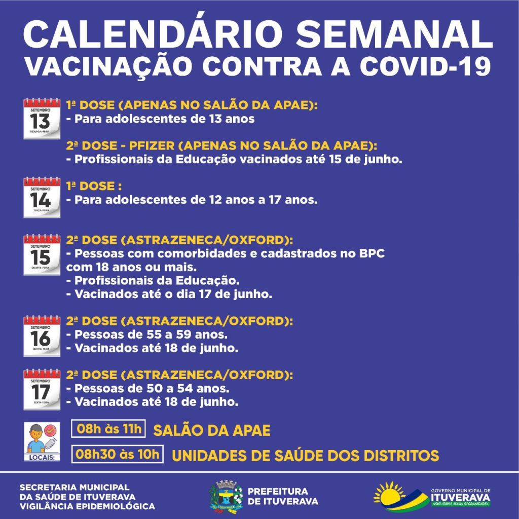 11/09/2113/09/21 O Progresso de Ituverava Divulgado calendário semanal de vacinação contra a COVID-19 Ituverava segue avançando na imunização da população contra a COVID-19! Confira o calendário semanal da vacinação! Compartilhe! Compartilhe isso: Compartilhar no WhatsApp(abre em nova janela) WhatsApp Compartilhar no Facebook(abre em nova janela) Facebook Compartilhar no X(abre em nova janela) 18+ Relacionado