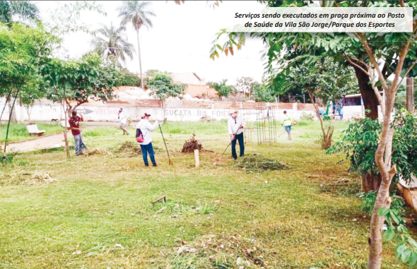 Nessa semana, a equipe realizou serviços de limpeza em locais como a Praça da Vila São Jorge, o Posto de Saúde da Vila São Jorge, a Avenida Orestes Quércia, o Centro de Convivência do Idoso, Casa Abrigo, Posto de Saúde do bairro Benedito Trajano Borges, praça da Avenida Salvador Cordaro Cruz, no bairro Carminha Sandoval, entre outros.