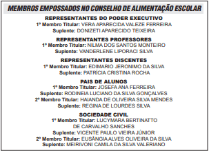 Confira no quadro abaixo os membros empossados no Conselho de Alimentação Escolar