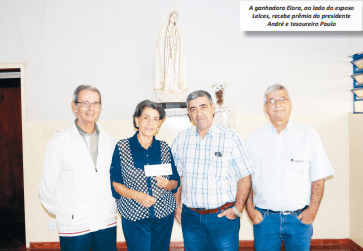 Acompanhada pelo esposo, o bancário aposentado Lelces Antônio Ignácio, ela recebeu o prêmio de R$ 1 mil, entregue pelo presidente da Creche André Luiz dos Santos e tesoureiro Paulo César da Silva Ferreira.