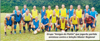 O Grupo “Amigos do Piolim”, que pratica futebol society na Chacará do Lolô/Kadão nas manhãs de domingos, estão com jogo amistoso contra a Seleção Master Regional. A partida está marcada para o dia 28 de maio.