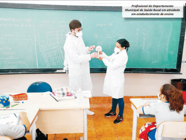 A equipe do Departamento de Saúde Bucal comparece nas Escolas e Creches e promove ações de instruções de escovação e higiene bucal, bochecho fluoretado, palestras e atividades lúdicas.